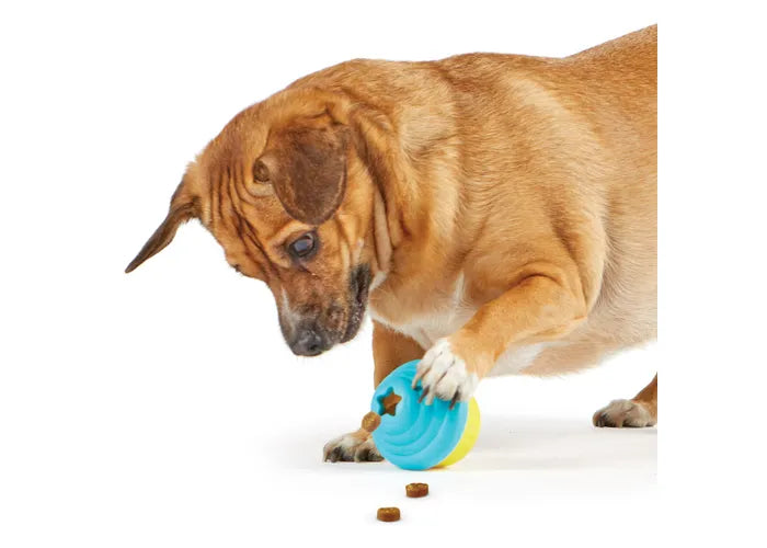 With this cupcake-themed interactive puzzle for small dogs, pets discover boredom-busting mental stimulation as they hunt for treats hidden inside this toy for small dogs. Place treats or kibble inside the cupcake and encourage your dog to use its nose and paws to wiggle and wobble the cupcake to access the treats inside as they spill out. The slow release of food encourages fast eaters to slow down.