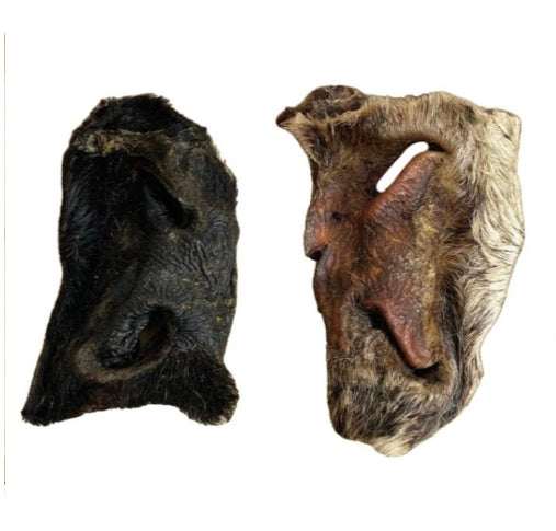 Just 100% dried cow nose, so contains no bone but it is a tougher dog chew
