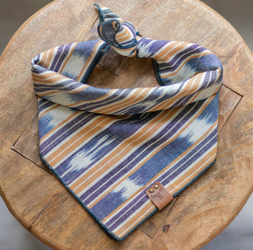 Our Xecul bandana is made from a 100% cotton fabric that was handwoven in Guatemala. It is a lightweight fabric. This bandana is a classic square style with a finished rolled edge.