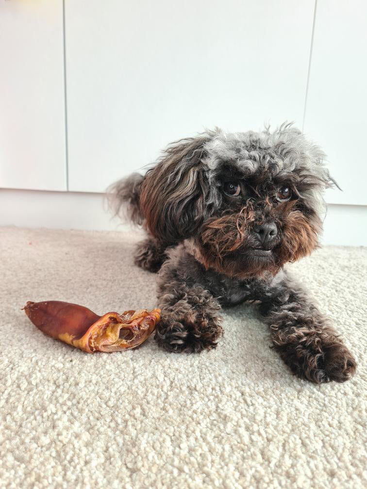Pigs ears are easily digestible and a great way to keep your dog occupied for a long time (depends on the size of the dog). Other benefits are they help with teeth and gum health. These pigs ears have been slowly air dried to help retain natural flavour and also increases the chew-ness of the product.